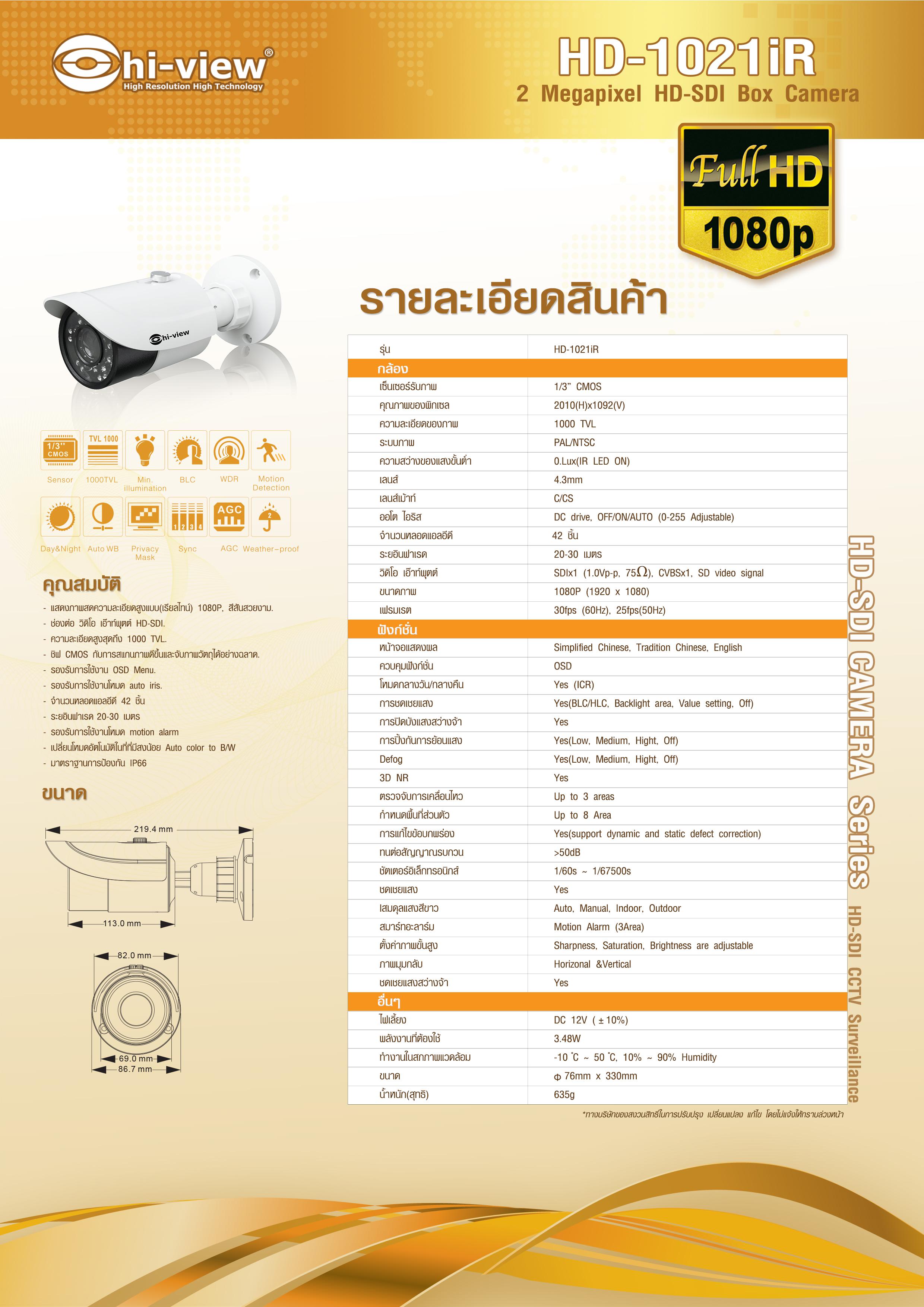 -ฟังก์ชั่น: HLC, WDR, 3D NR, ICR day&night mode, PoE, AGC, BLC, WB, OSD Menu, Auto Iris, Motion alarm, Auto color to B/W